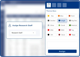 - Manage workflow: Facilitate central screening across multiple studies simultaneously and assign individual research staff to good-fit patients across studies.